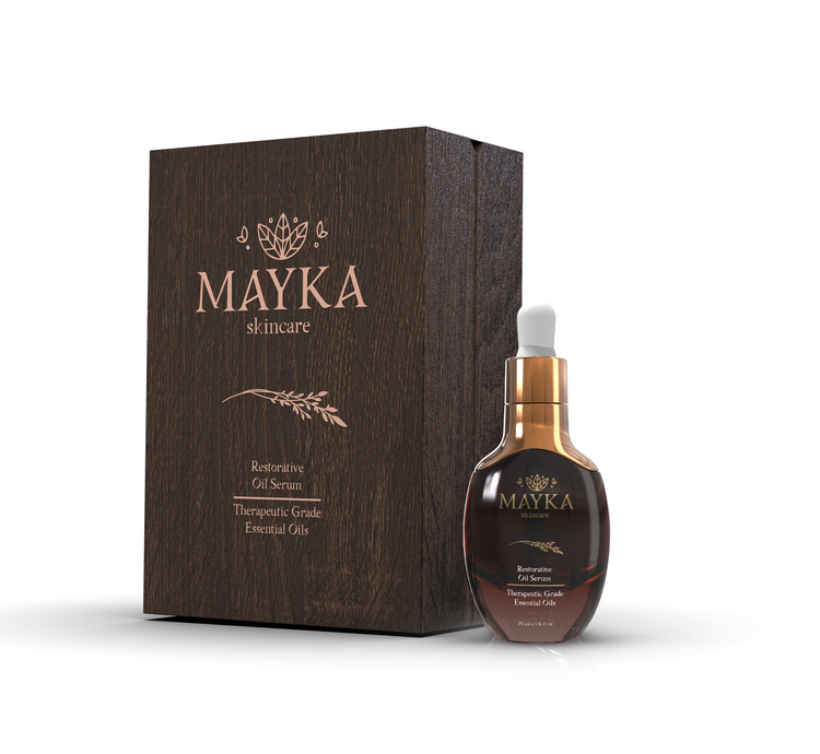 Mayka Restorative Oil Serum is a powerhouse of anti-aging and regenerative properties. Formulated with therapeutic-grade organic essential oils and mixed for maximum strength.T his serum purifies, tones, moisturizes, and restores the skin to its natural, vibrant state.